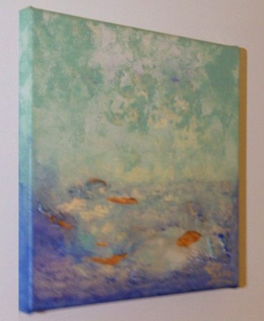 “Oceans of Bijuku” “Oceans of Bijuku” was painted from memories of an exotic trip as a younger lady to the East Coast of Africa . The incredible sights, sounds, smells, textures and tastes were the inspiration for this interesting and highly unusual minimalist painting.