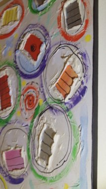 “Shushua” – My Ode To Joy “Shushua” – My Ode To Joy, was created during one of the most joyful periods of her life – according to RjF: “It was a time when everything was going right in my life and everyone around me seemed to be happy and content as well. One day I felt inspired to try to capture the joy and incredible privilege of being alive with so much to explore and enjoy as gifts from the great creator” The spirit and energy of this large canvas painting is just incredible. (Measures 40″ x 30″ – acrylic paint.) A spotlight makes the painting come alive and magically dominate a room.